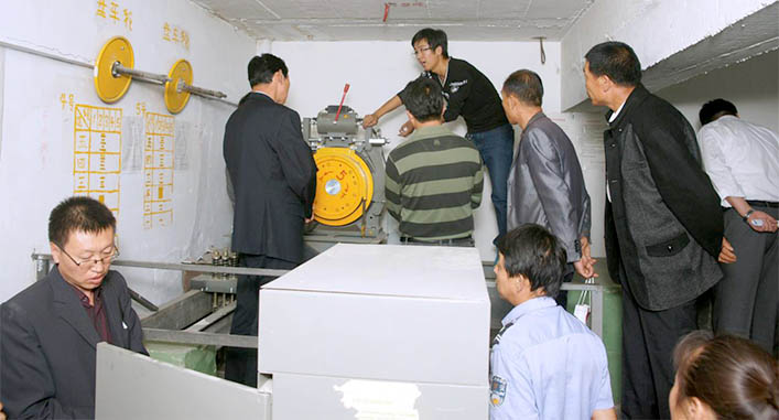 电梯公司工程技术人员现场讲解盘车救援操作步骤