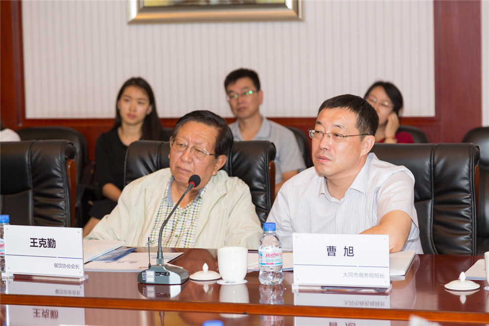 大同市商务局曹旭局长、王庆副局长在发言中希望通过“投资合作、经营合作、互派合作”这三种方式,共同提升两市餐饮业的发展水平,并希望通过本次活动促进两市餐饮业之间的交流与合作。
