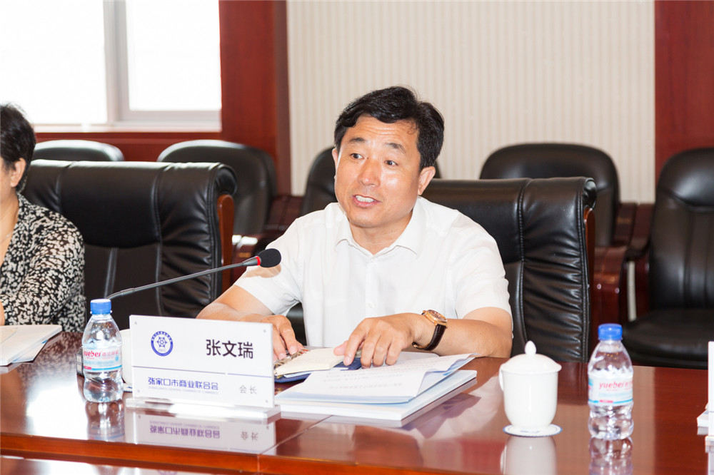 张家口市商业联合会会长、蓝鲸控股集团董事长张文瑞在两市“促进餐饮业发展洽谈会”上,对大同市的领导和企业家表示了热烈的欢迎,并向来宾介绍了我市餐饮行业的状况和发展前景。希望通过“冬奥契机、京津冀协同发展、可再生能源示范区”这三大历史机遇,促进两市餐饮业的共同发展。