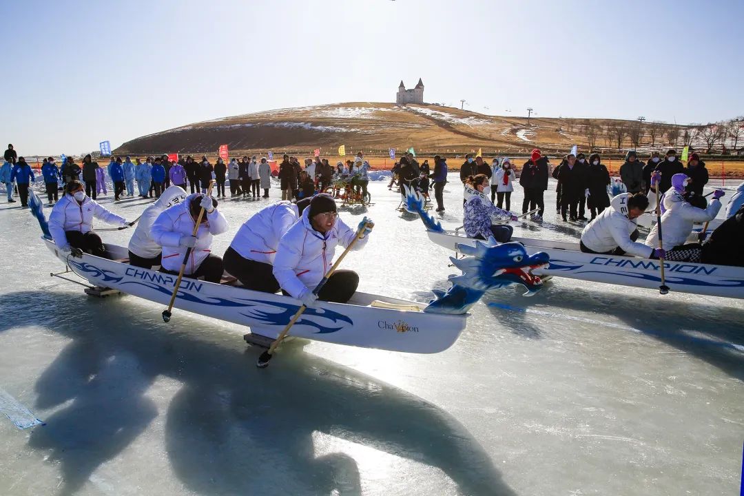 18支代表队参加了滑雪、冰车接力赛、冰上双人自行车赛、冰上拔河赛和冰上龙舟赛。